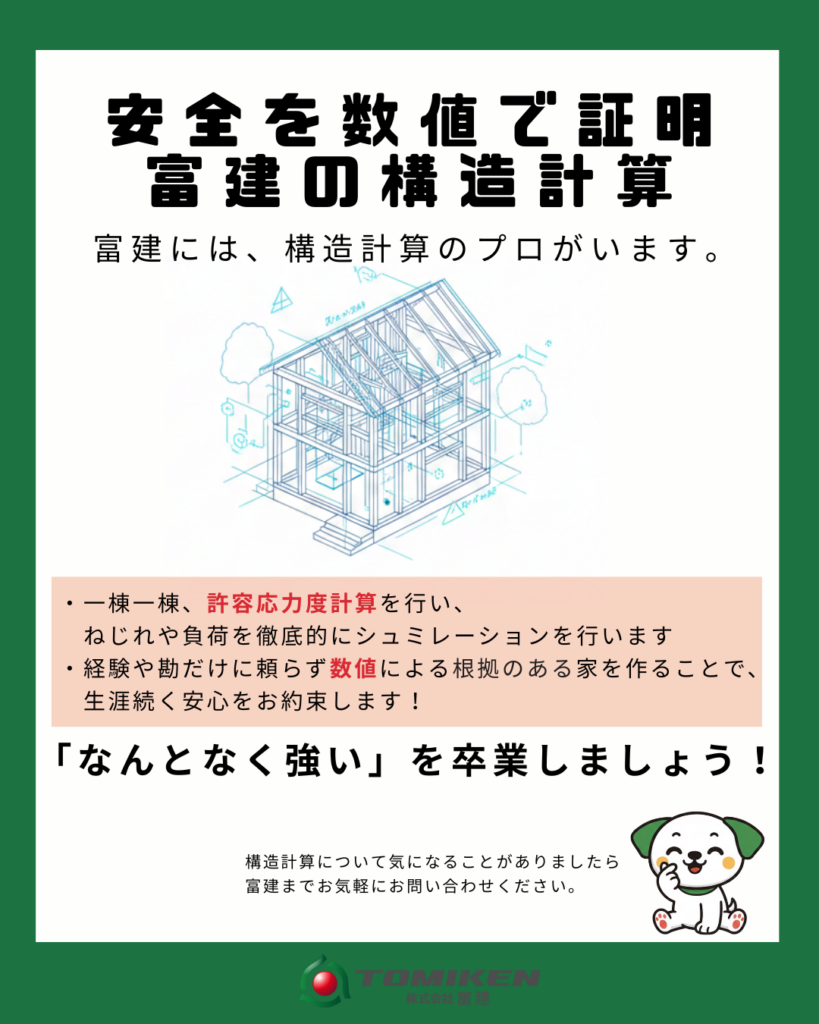 これから家を建てる方、リフォームを検討されている方は、ぜひ「構造計算(許容応力度計算)」に基づいた家づくりを意識してみてください。