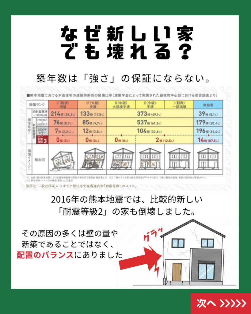 「築浅の物件や、耐震基準をクリアしている家なら大きな地震が来ても安心」と思っていませんか? しかし、2016年の熊本地震では、比較的新しい「耐震等級2」の住宅でも倒壊したものがありました。