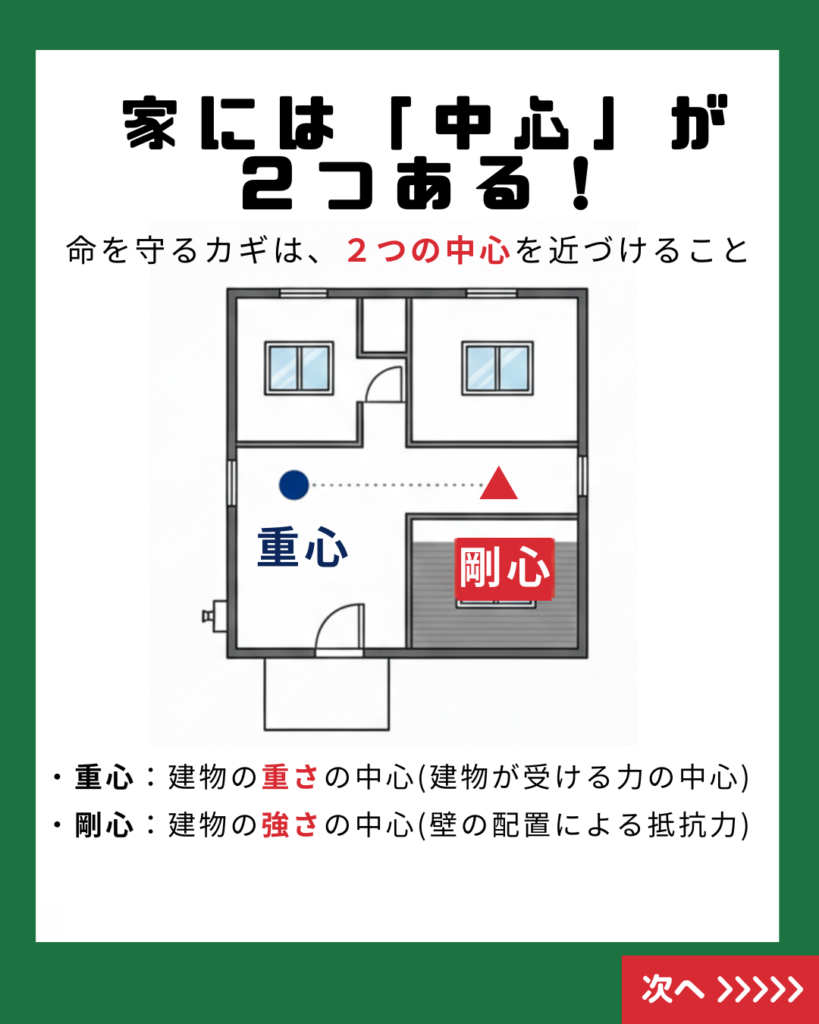 剛心(ごうしん): 建物の「強さ(壁の配置)」の中心
