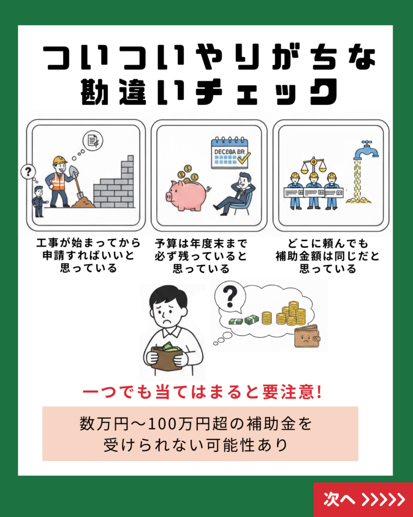 「補助金があるのは知っているけれど、工事が終わってから考えればいいよね?」 もしそう思っているなら、要注意です!