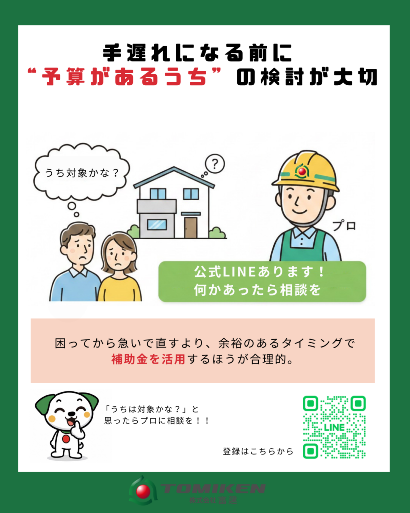 うちも対象かな?と気になったら、まずはプロに相談するのが一番の近道です。 予算がなくなる前に、余裕を持って検討を始めましょう!
